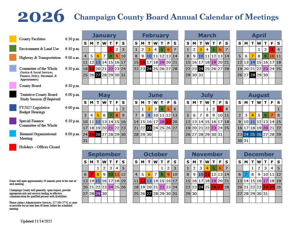 Champaign county board annual meeting calendar 2026